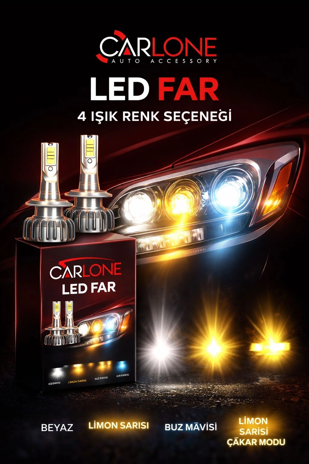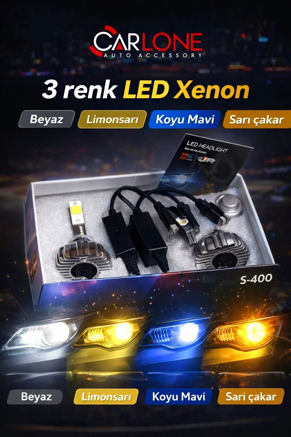 Toptan 3 Renk Led Xenon Beyaz-Sarı-BuzMavi H4