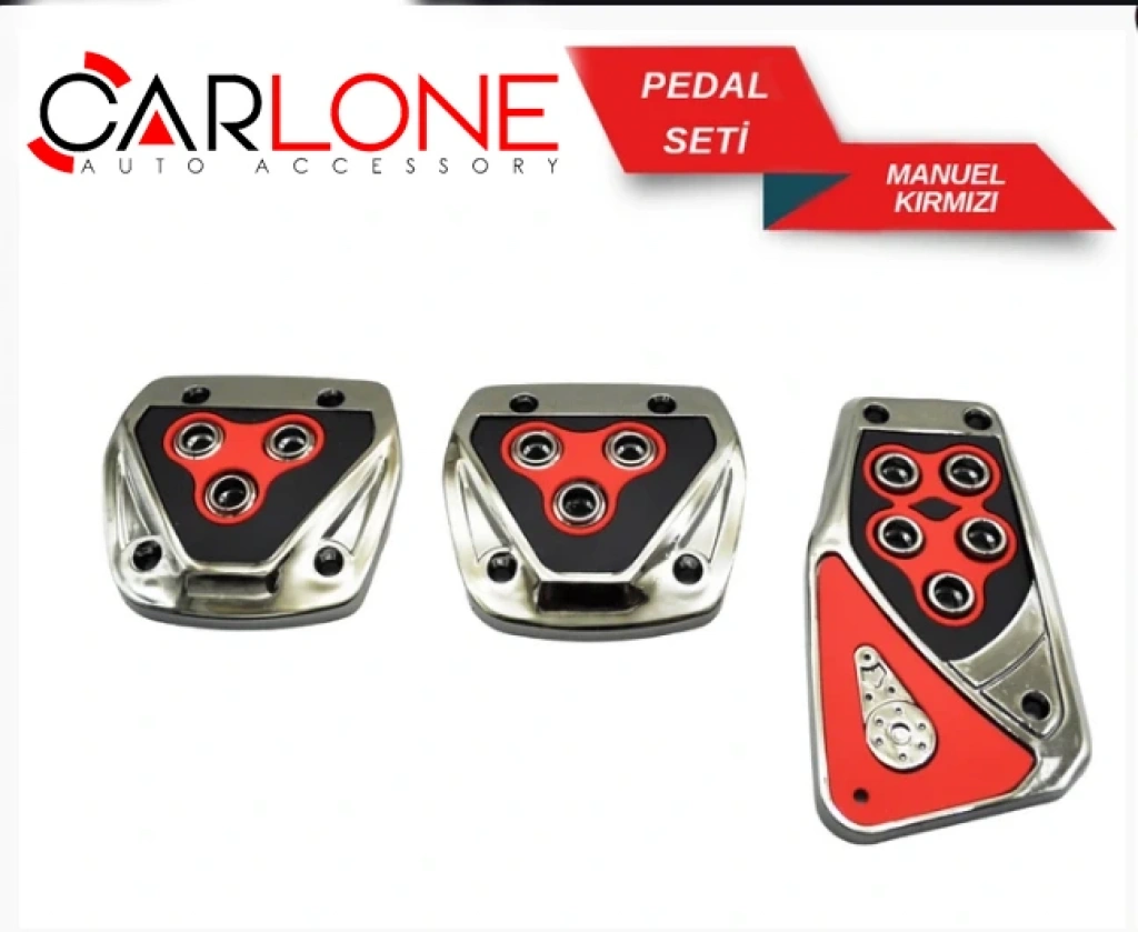 Toptan Araç İçi Pedal Seti - Kırmızı Siyah Krom Detaylı Manuel Set