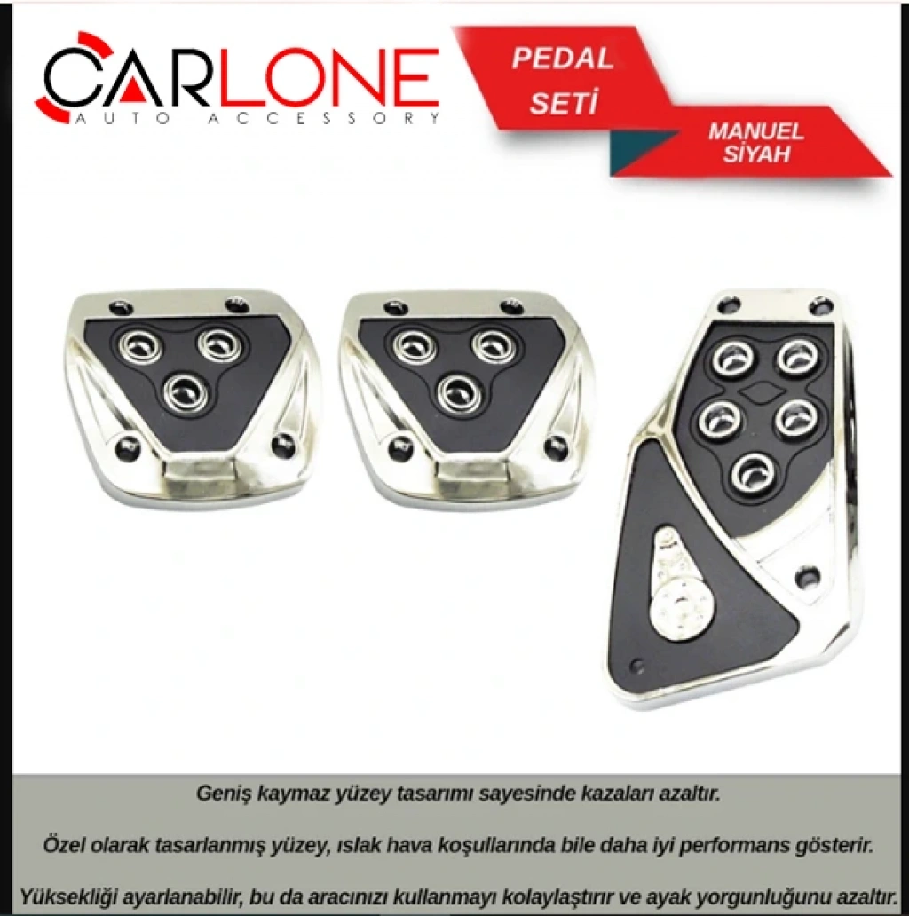 Toptan Araç İçi Pedal Seti - Siyah Gri Krom Detaylı Manuel Set